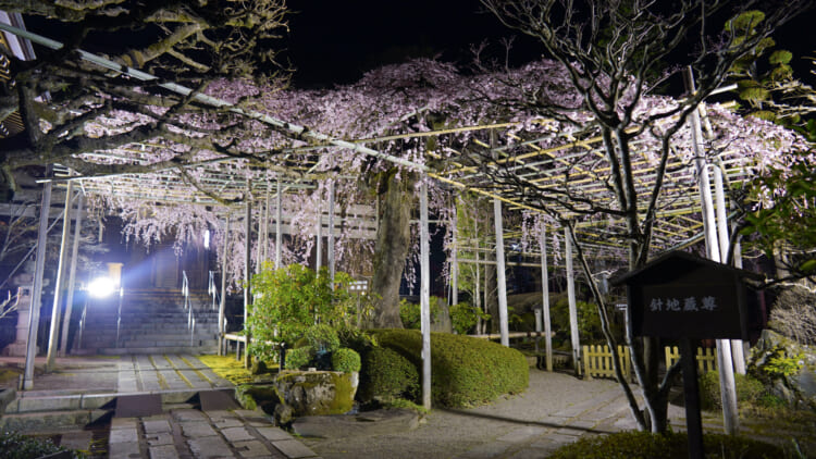 また、境内には東洋一とも称される広大な枯山水庭園(有料区域 8:30 ~ 16:30)もあり、桜とあわせて訪れることで、より深い趣を感じることができます。春のひととき、昼と夜で表情を変える時雨桜の美しさを、ぜひご堪能ください。