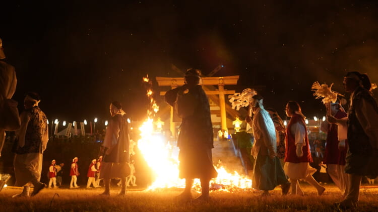 松明行列はどなた様でもご参加いただけます。神事はどなた様でもご見学いただけます。