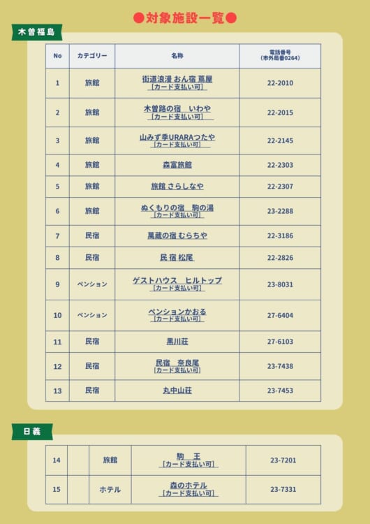 1)木曽町宿泊助成券が利用可能な宿泊施設を予約ください