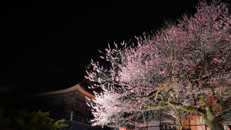大通寺では、春の訪れとともに境内の桜が美しく咲き誇り、夜には幻想的なライトアップが行われます。