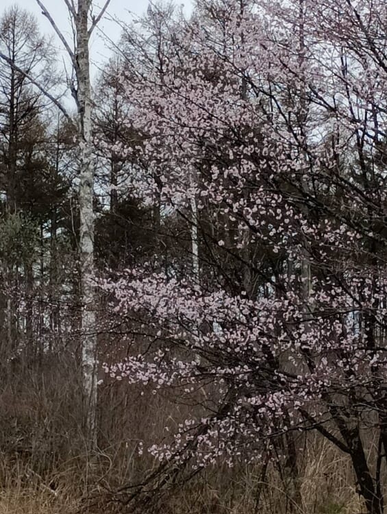 開田高原でも、一番早く咲くと言われいる桜が咲き始めました。