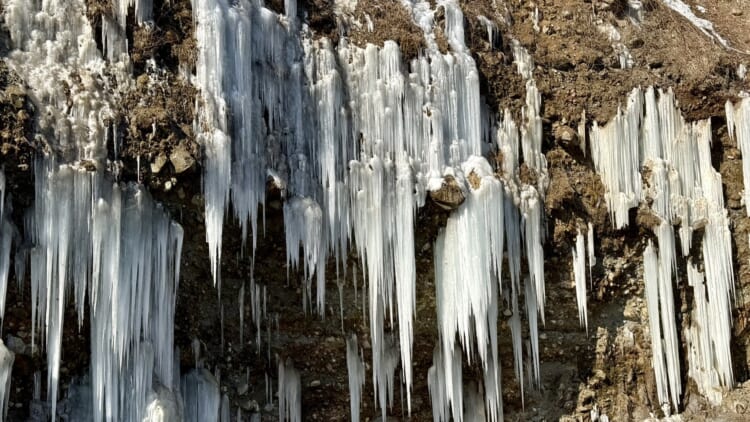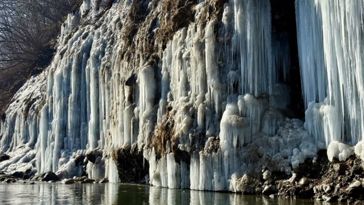 それでも、陽の光を受けてきらきらと輝く氷柱を間近にすると、