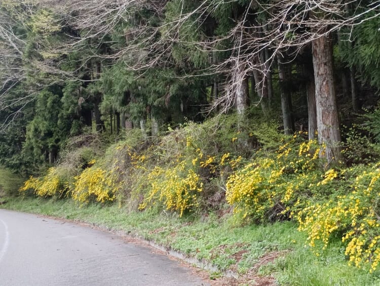 木曾町日義地区の山吹トンネル近くの中山道沿いに咲く、山吹は実を付けると言われています。このヤマブキの箸で食事をすると、子宝に恵まれると言い伝えられています。