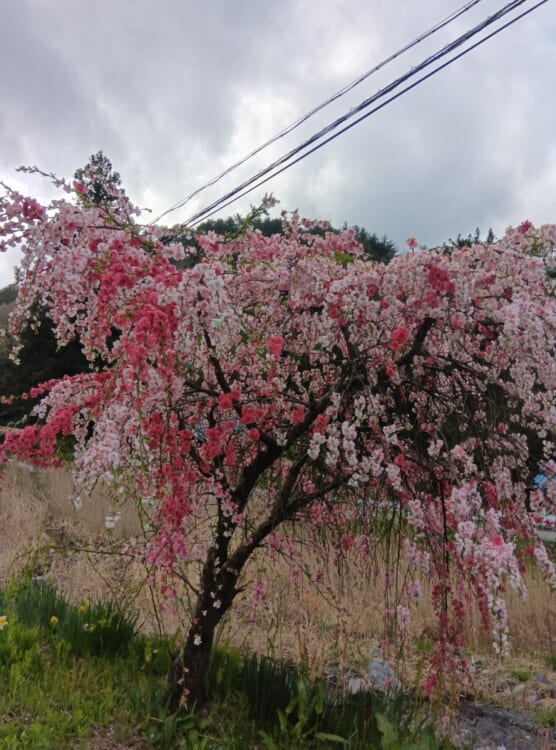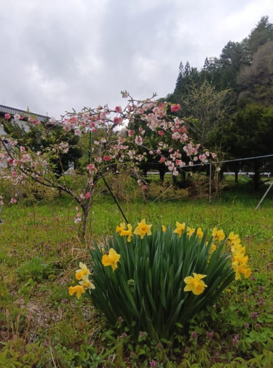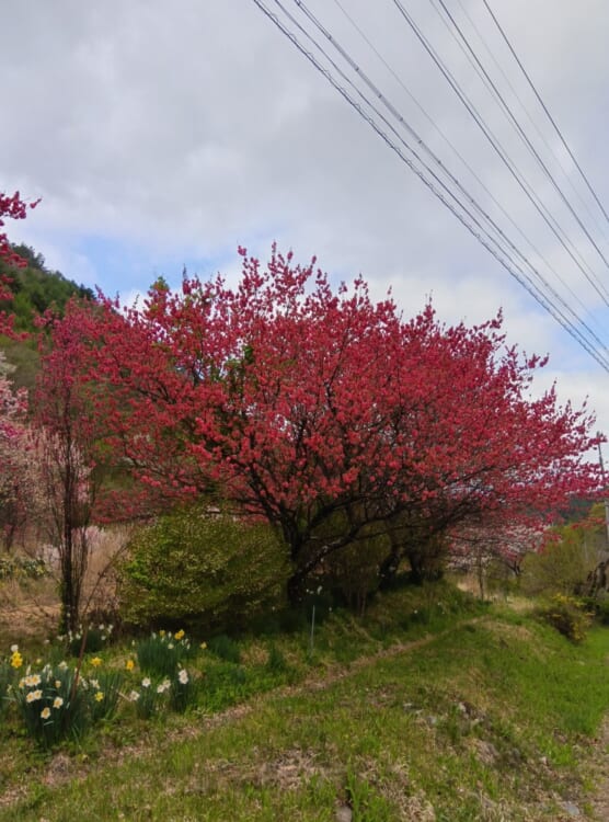 今日も朝から晴れています。花桃に癒されます。