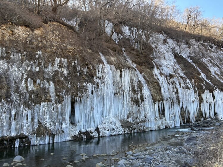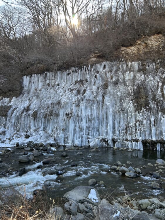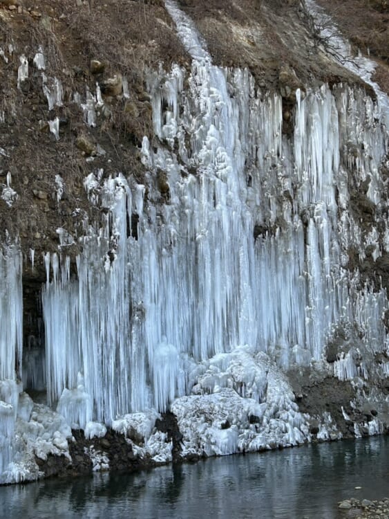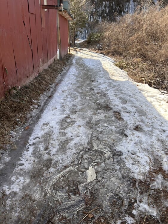 日中は陽が射すと氷が落ちています。足元も悪いので気をつけてください。
