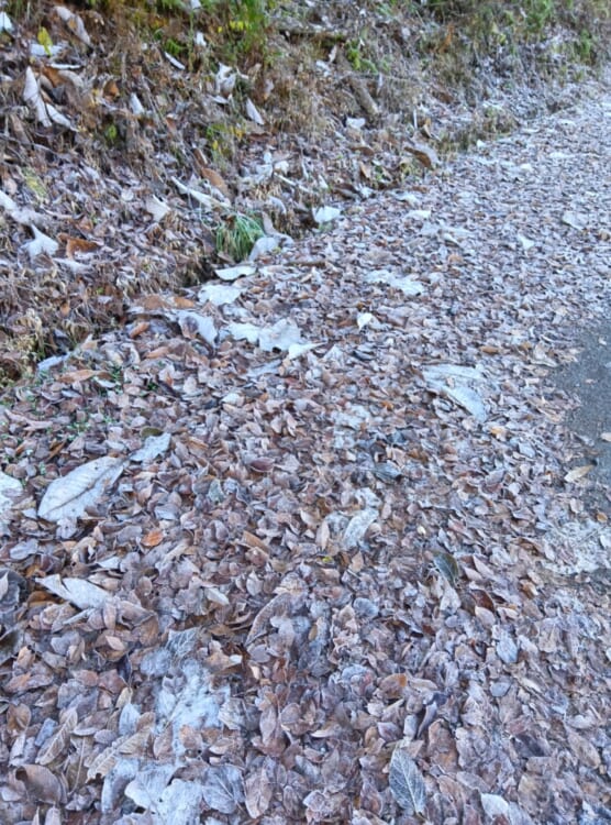 落葉した所に霜が…