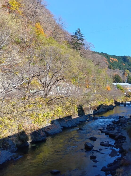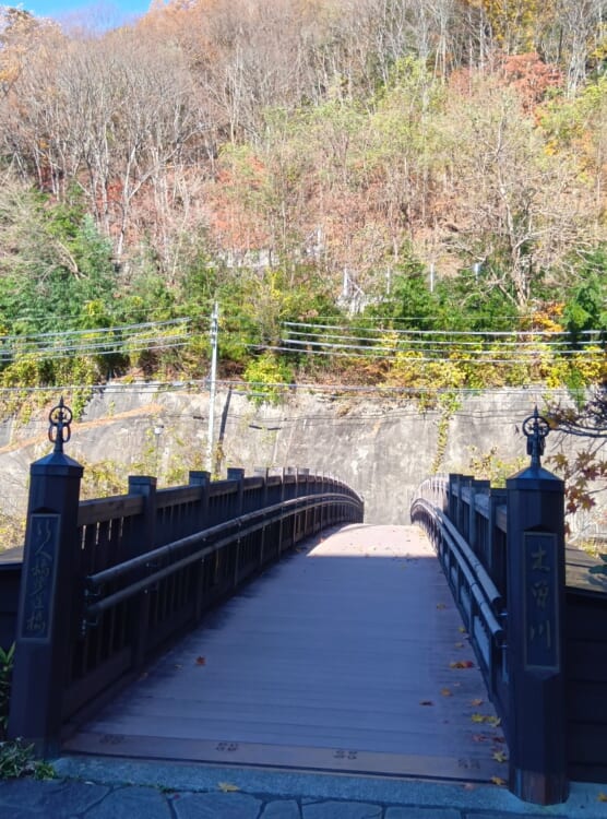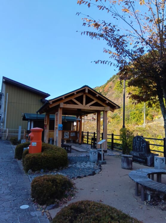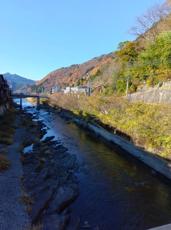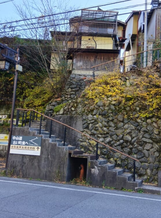 足湯から古い町並み 馬宿小路を通って行ってください。
