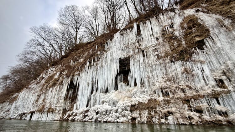 三岳の白川氷柱群は、氷柱の成長が順調に進んでいます。