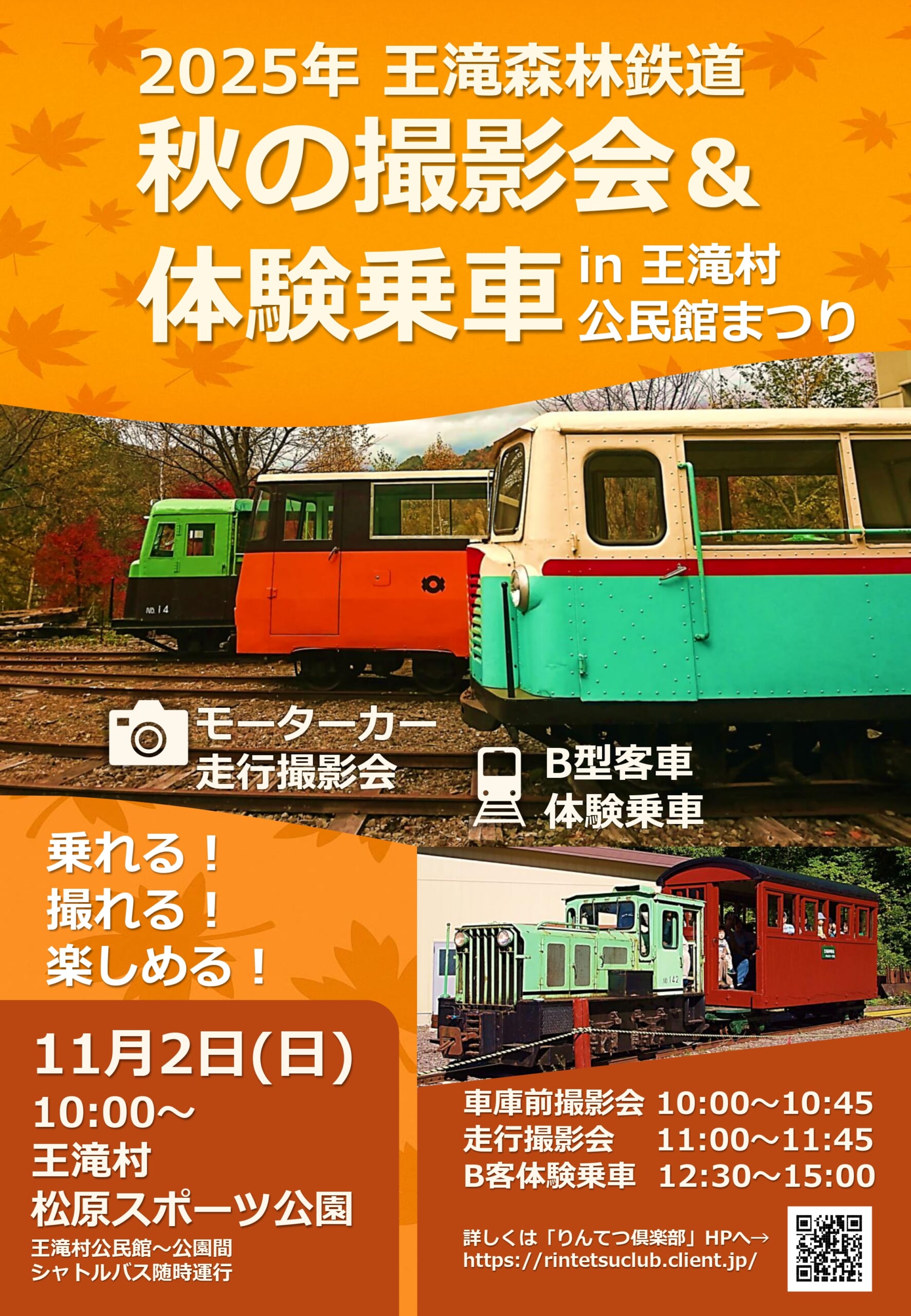 松原スポーツ公園にて王滝森林鉄道の撮影会、体験乗車会が開催されます。