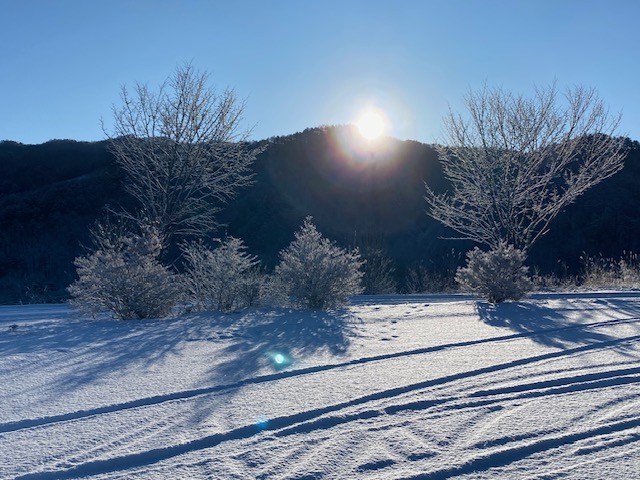 木曾町福島はあまり雪は降らないので、乾燥してますが、開田高原は昨夜も雪が降って、あたり一面真っ白になりました。今日はいい天気で御嶽山も綺麗に見えています。