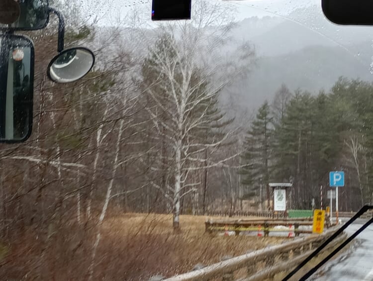 御嶽山は靄の中で、見ることができません。